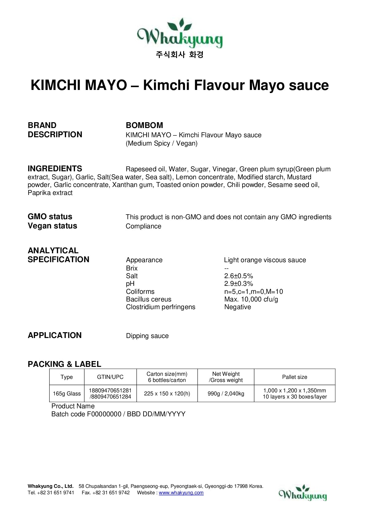 BOMBOM's Award Winning Kimchi Mayo is 100% Vegan, Gluten Free, and MSG FREE .