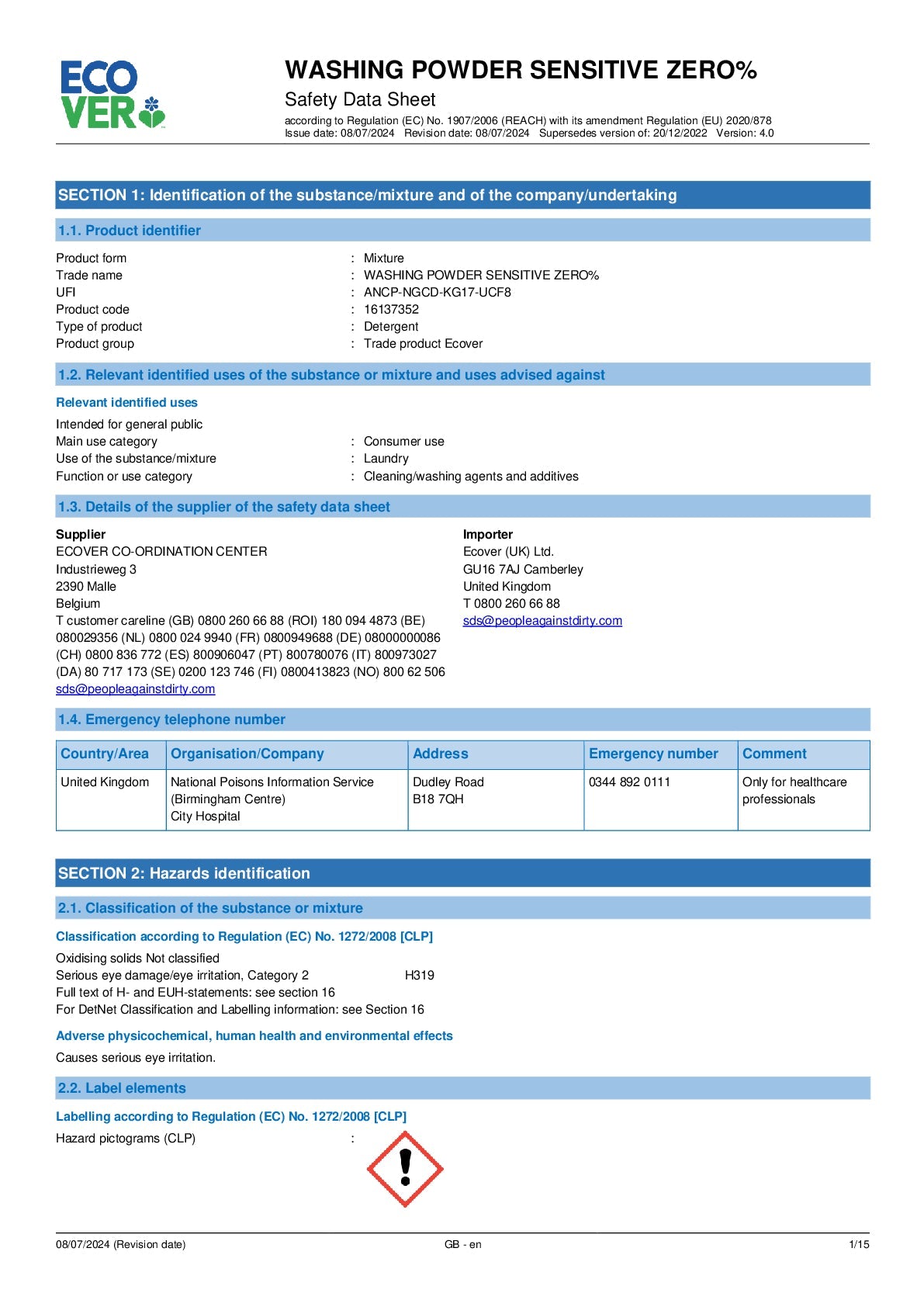 Our Zero range laundry powder is specially formulated with no colouring, fragrance or enzymes to be extra caring to your skin.