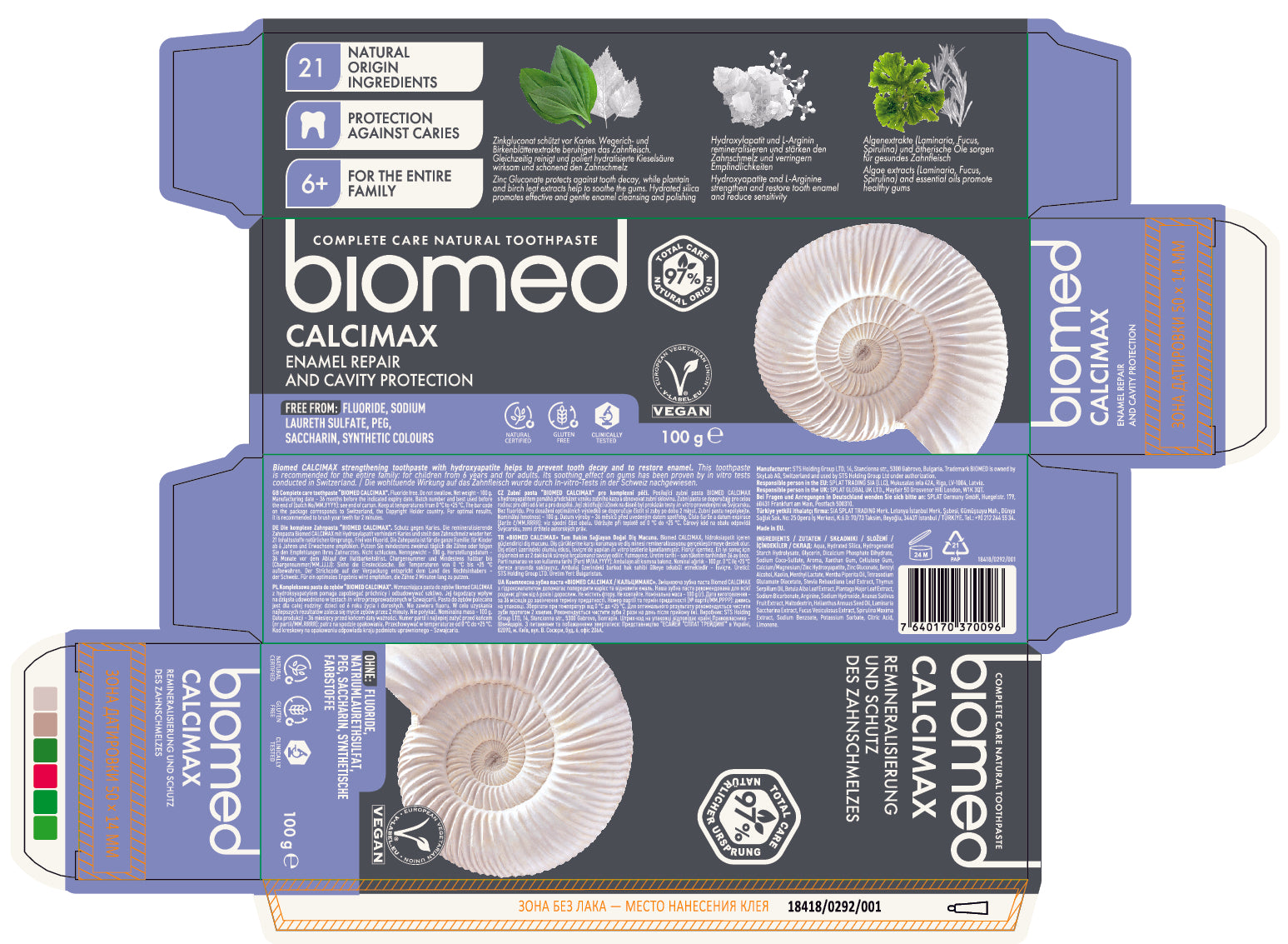 BIOMED CALCIMAX is salty toothpaste with spirulina, pink clay, thyme essential oil, natural antiseptics.