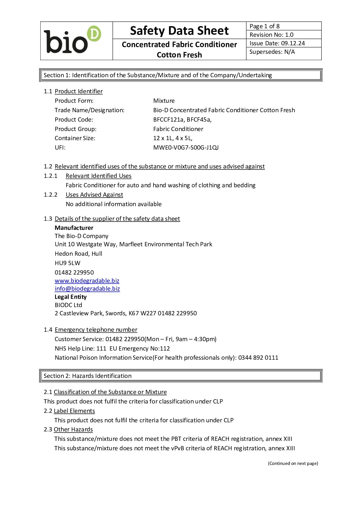 Complete your laundry routine with Bio-D's Cotton Fresh Fabric Conditioner. This naturally derived fabric conditioner softens and protects your clothes reducing static and wrinkles while keeping fabrics feeling luxuriously smooth. Perfect for even the most delicate items, this eco-conscious formula is hypoallergenic, vegan and free from harsh chemicals, making it ideal for sensitive skin and baby clothes.