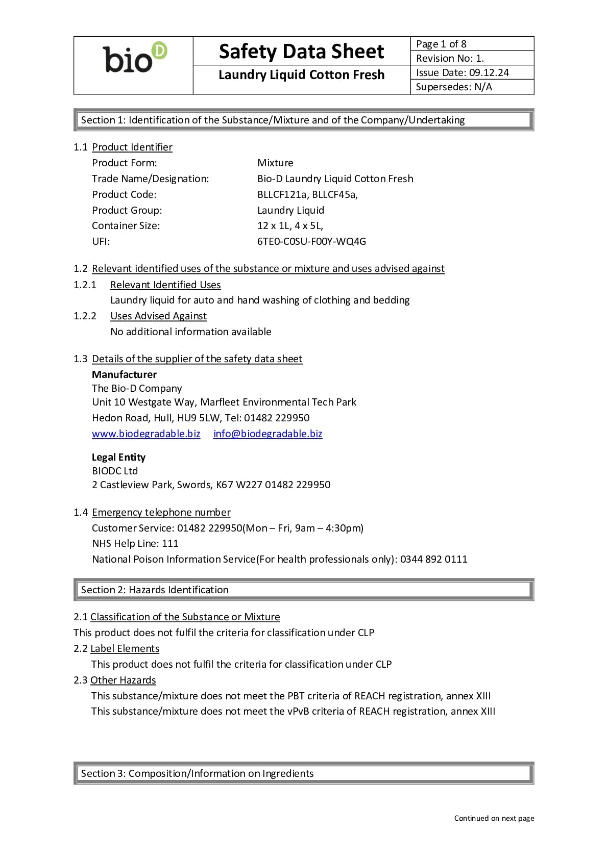 This Non-Bio Cotton Fresh Laundry Liquid delivers outstanding cleaning power while being gentle on fabrics and the planet. With a long-lasting, crisp fragrance that evokes the feeling of fresh linens on a sunny day, this plant-based formula is biodegradable, cruelty-free, and safe for septic tanks. Suitable for whites, colours, and delicates. It works brilliantly even at low temperatures, helping you save energy without compromising results.