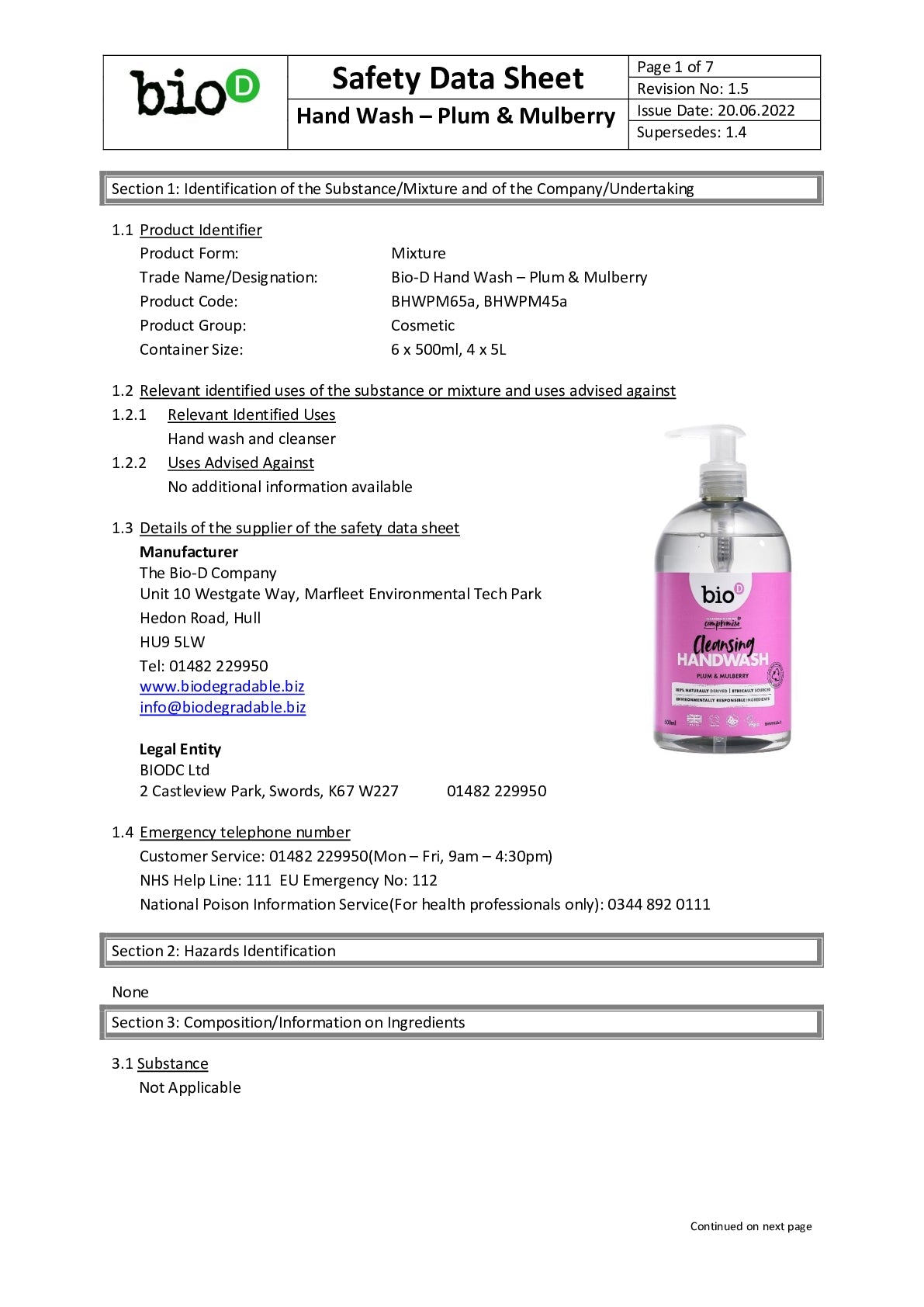 The delicous fragrances of Plum and Mulberry combine to create a comforting fruity hand wash that will leave your hands soft and germ free! This fast-acting favourite is tested to BSEN1276 (food grade standard) - it neutralises 99.9% of harmful bacteria including E.coli, Salmonella and MRSA, while still being gentle on skin.
