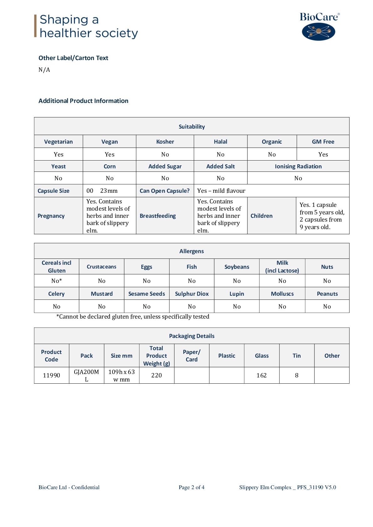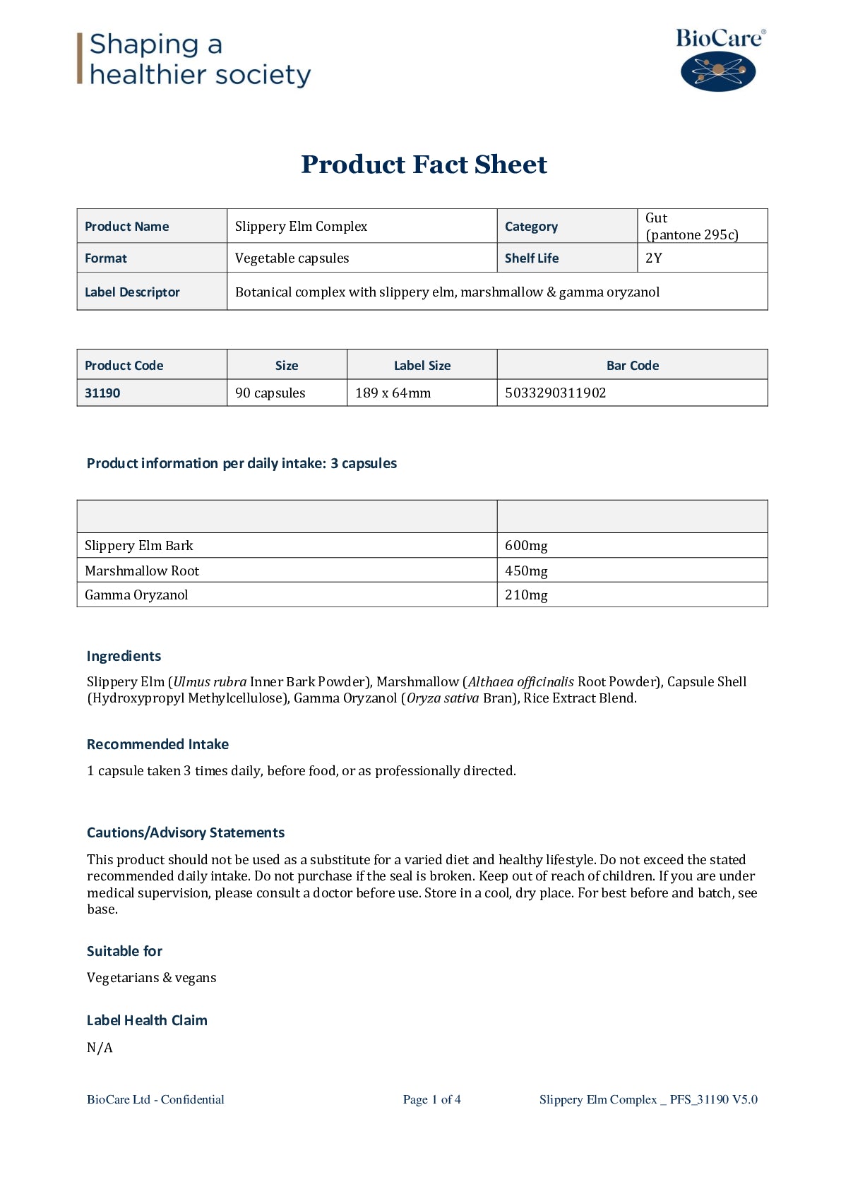 Slippery elm soothes the digestive tract and is a source of mucilage which supports the mucous membranes.