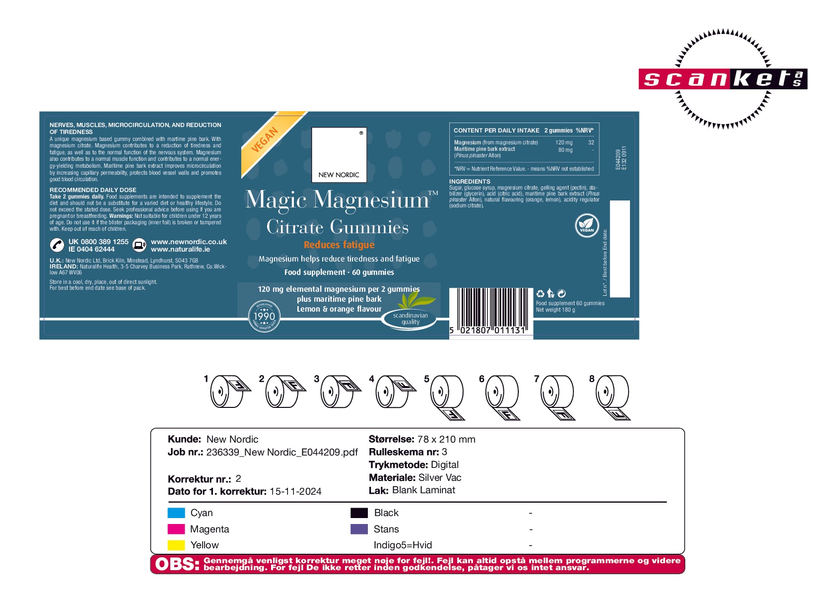 A unique magnesium gummy combined with maritime pine bark. With magnesium citrate. Magnesium contributes to a reduction of tiredness and fatigue, as well as the normal function of the nervous system. Magnesium also contributes to the normal muscle function and contributes to a normal energy-yielding metabolism. Maritime pine bark extract improves microcirculation by increasing capillary permeability, protects blood vessel walls and promotes good blood circulation.