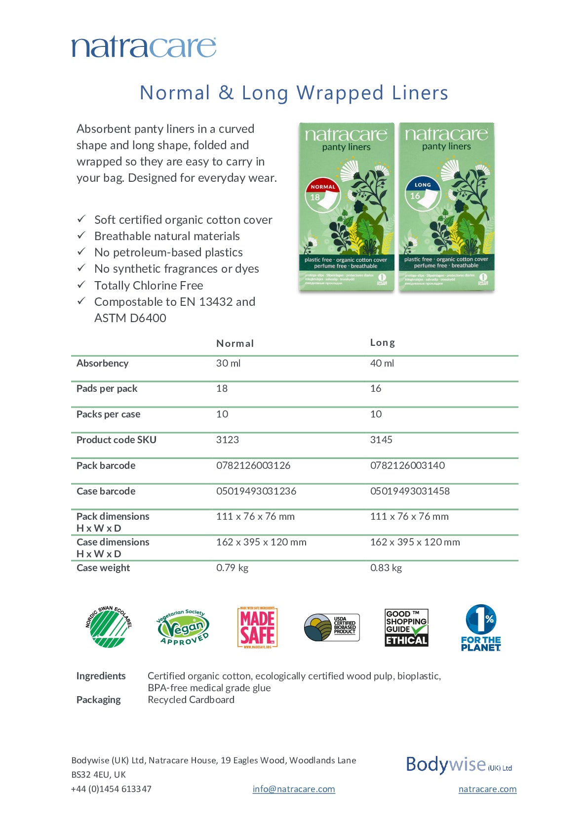 The normal liner has an advanced, curved shape design which is soft, absorbent and individually wrapped so that the liners can be popped into a handbag and used on the go.