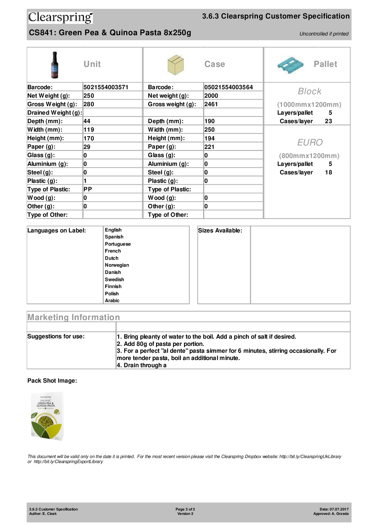 Clearspring organic Gluten Free pasta is made from protein rich green split pea flour and white quinoa flour, simply mixed with a little water to create a firm texture with a satisfying bite. Made in Italy by second generation millers, this bright green fusilli has a pronounced pea flavour and counts as one of your 5-a-day. A nutritious alternative to durum wheat pasta not just for those on a Gluten Free diet but also for the whole family.