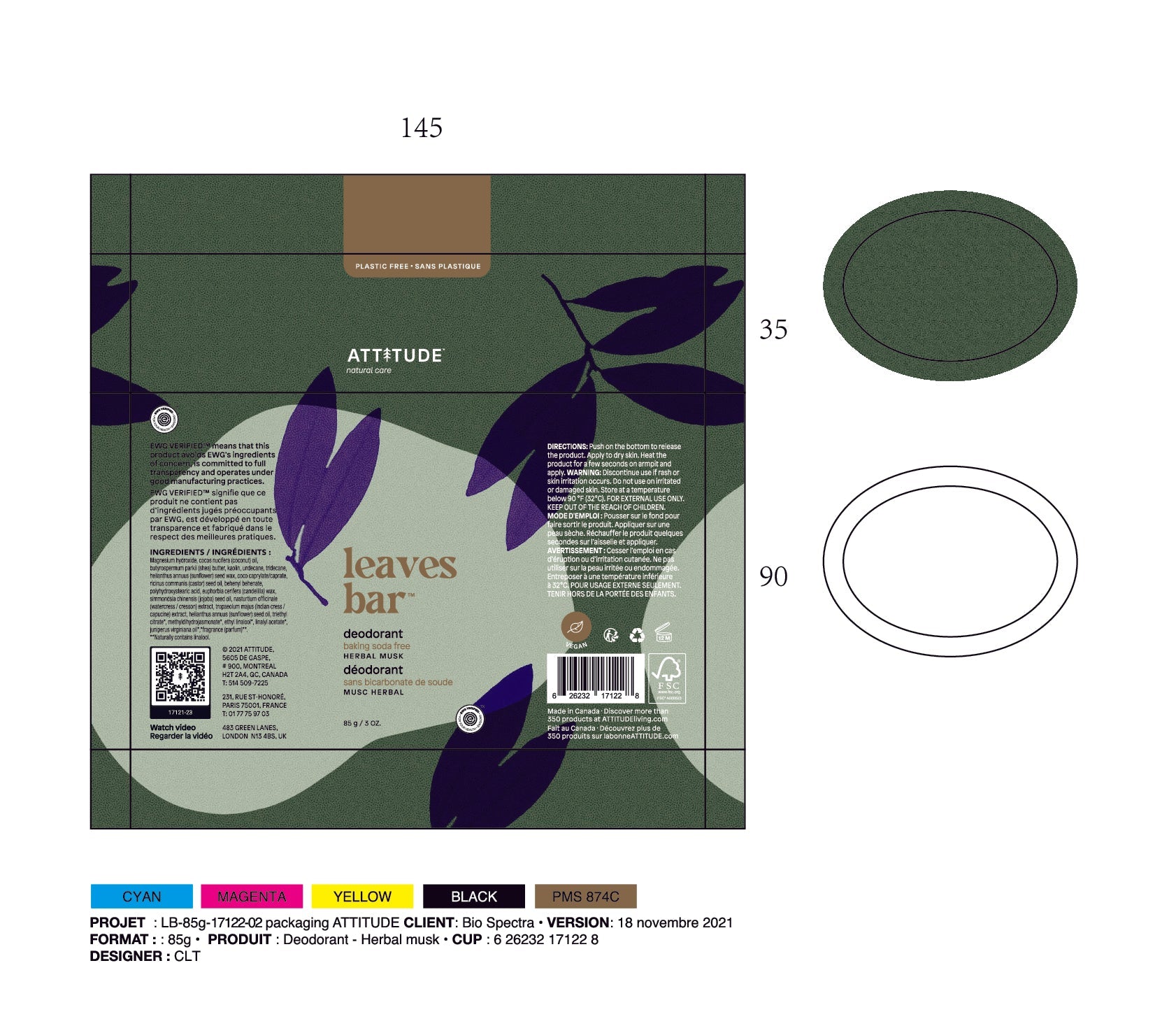Attitude Super Leaves Deodorant Bar - Lemon leaves 85g