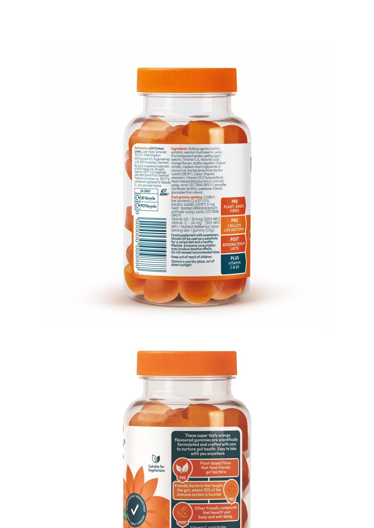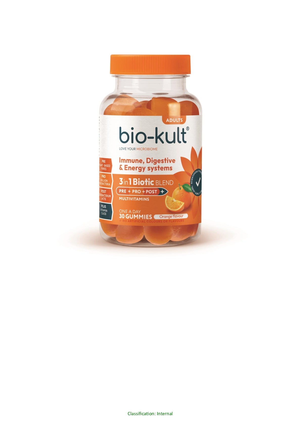 Bio-Kult 3-in-1 Biotic Blend Gummies for Adults, Orange Flavour. UK's first 3-in-1 biotic gummies with multivitamins* and scientifically researched strains. (30 Gummies)