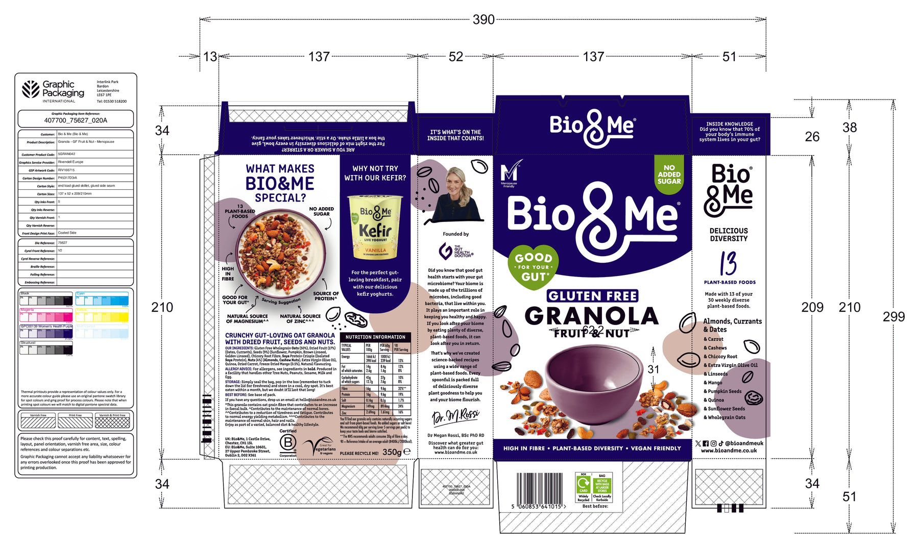 Fuel your day with our Fruit & Nut Granola, packed with 13 nutrient-dense plant-based foods and an impressive 16g of protein per 100g. This delicious blend delivers plant-powered goodness to support your body, especially during menopause, as it proudly features the universal shopping symbol for menopause-friendly products.