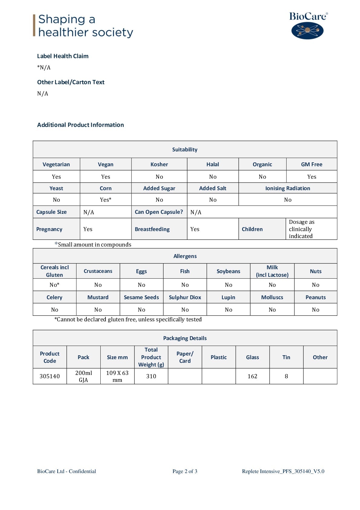 Biocare Replete Intensive 140g
