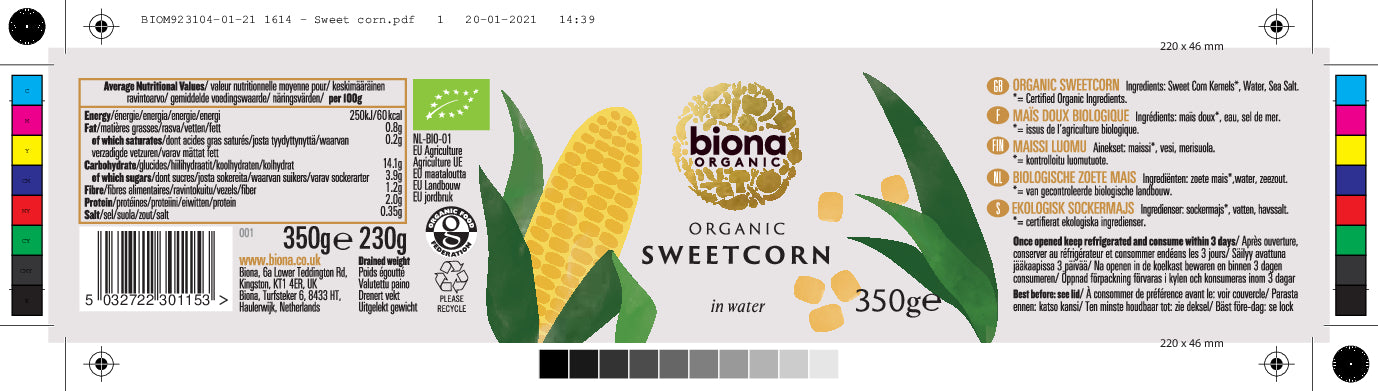 Naturally super-sweet corn, grown on an organic family-run farm in Northern Italy. Biona Organic Sweetcorn is canned fresh, just hours after harvesting to preserve all the nutrients.