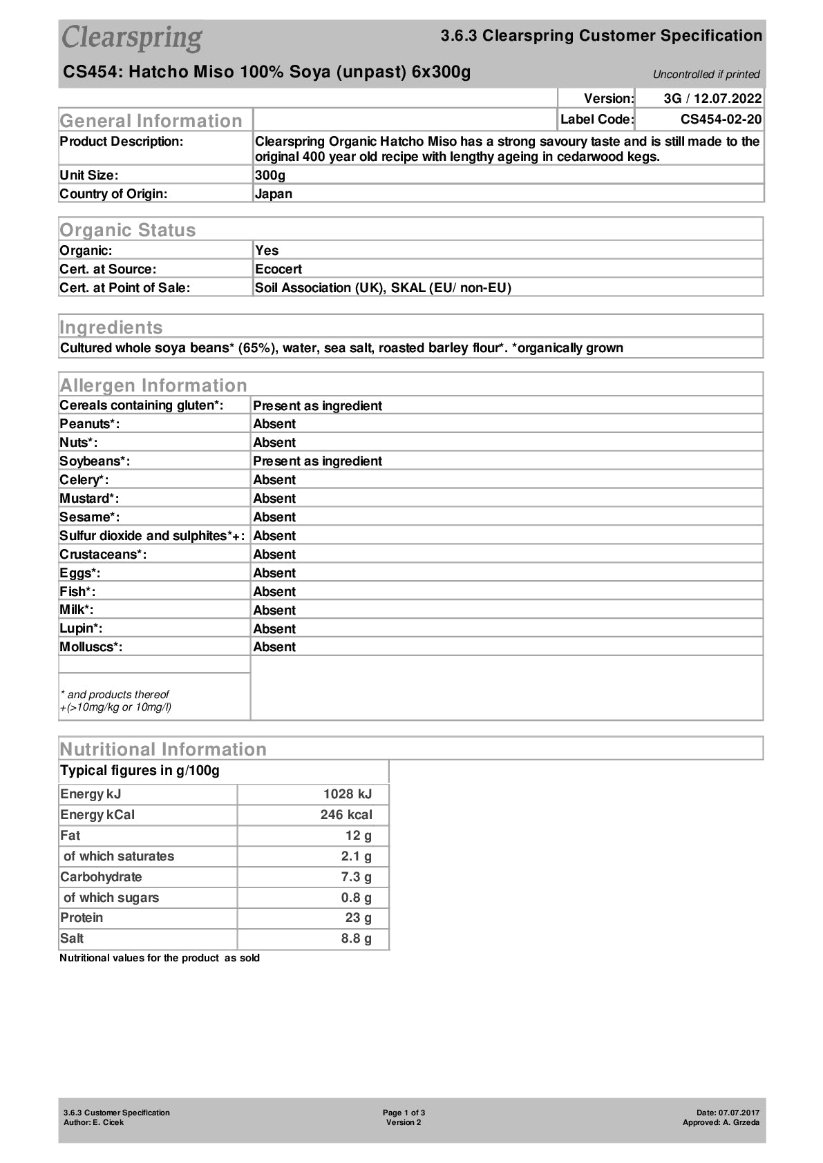 Revered for centuries as the most famous miso in Japan and celebrated as the miso supplied to the Emperor of Japan for over one hundred years, this pure soya bean miso is a powerhouse of concentrated nutrition, with 80% more protein and 25% less salt than either long aged Brown Rice or Barley Miso. It is produced by miso craftmen of five centuries, using large seasoned cedarwood kegs to fully mature for up to 3 years. As a result, Hatcho miso is also considered the most medicinally effective.