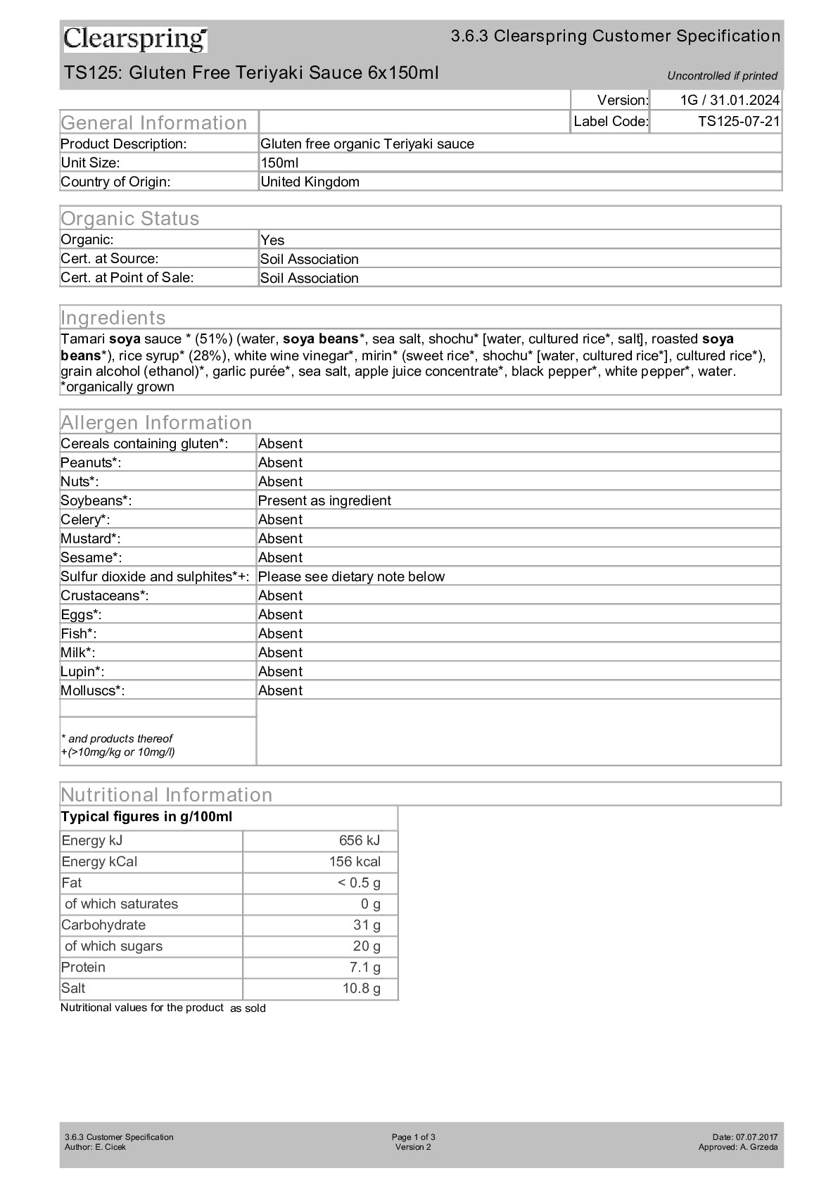 A deliciously sweet, yet rich and savoury sauce made to an authentic Japanese recipe with Gluten Free Tamari. Ideal for stir-fried, roasts, barbecues and marinades. Product of UK.