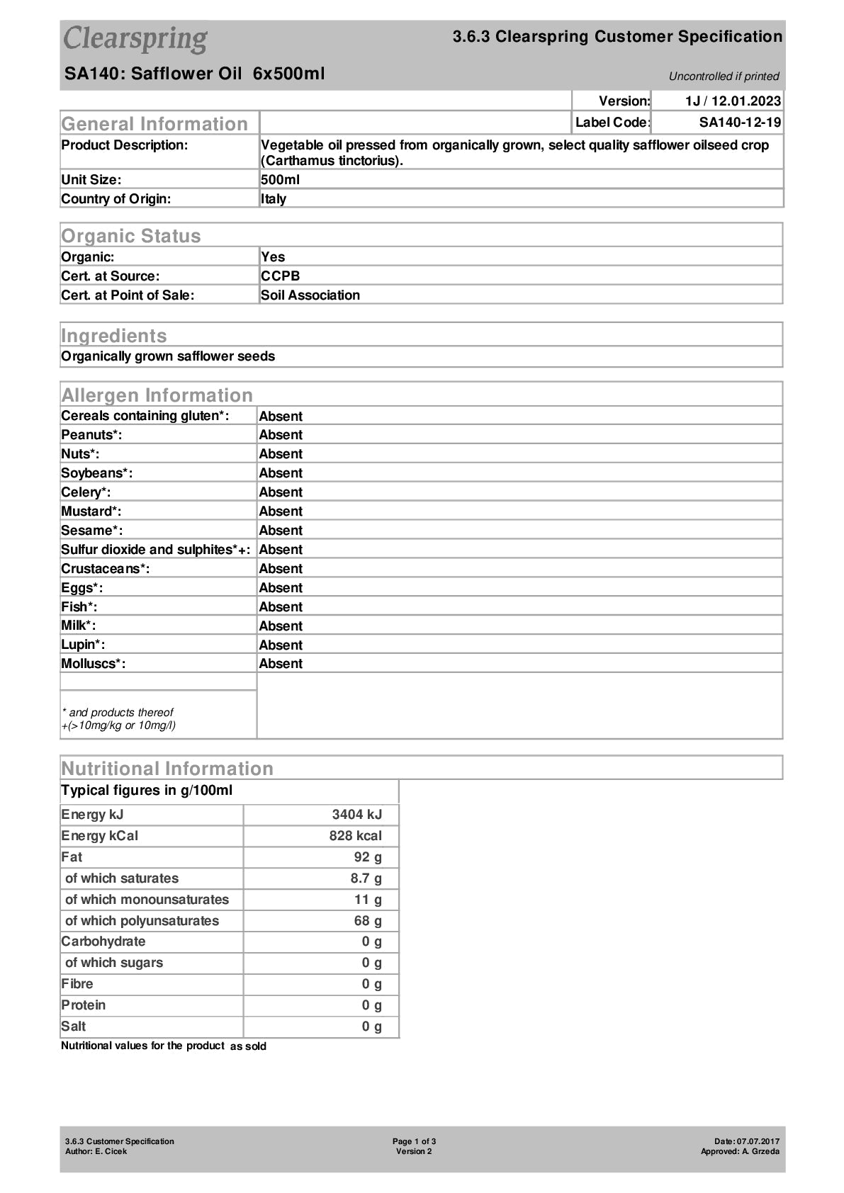 Our Organic Safflower Oil is cold-pressed and unrefined. Cold pressing is when the raw ingredient is simply pressed without external sources of heat or chemicals applied to the pressing process. This allows the oil to retain more of its flavour and nutritional value creating a higher quality product.