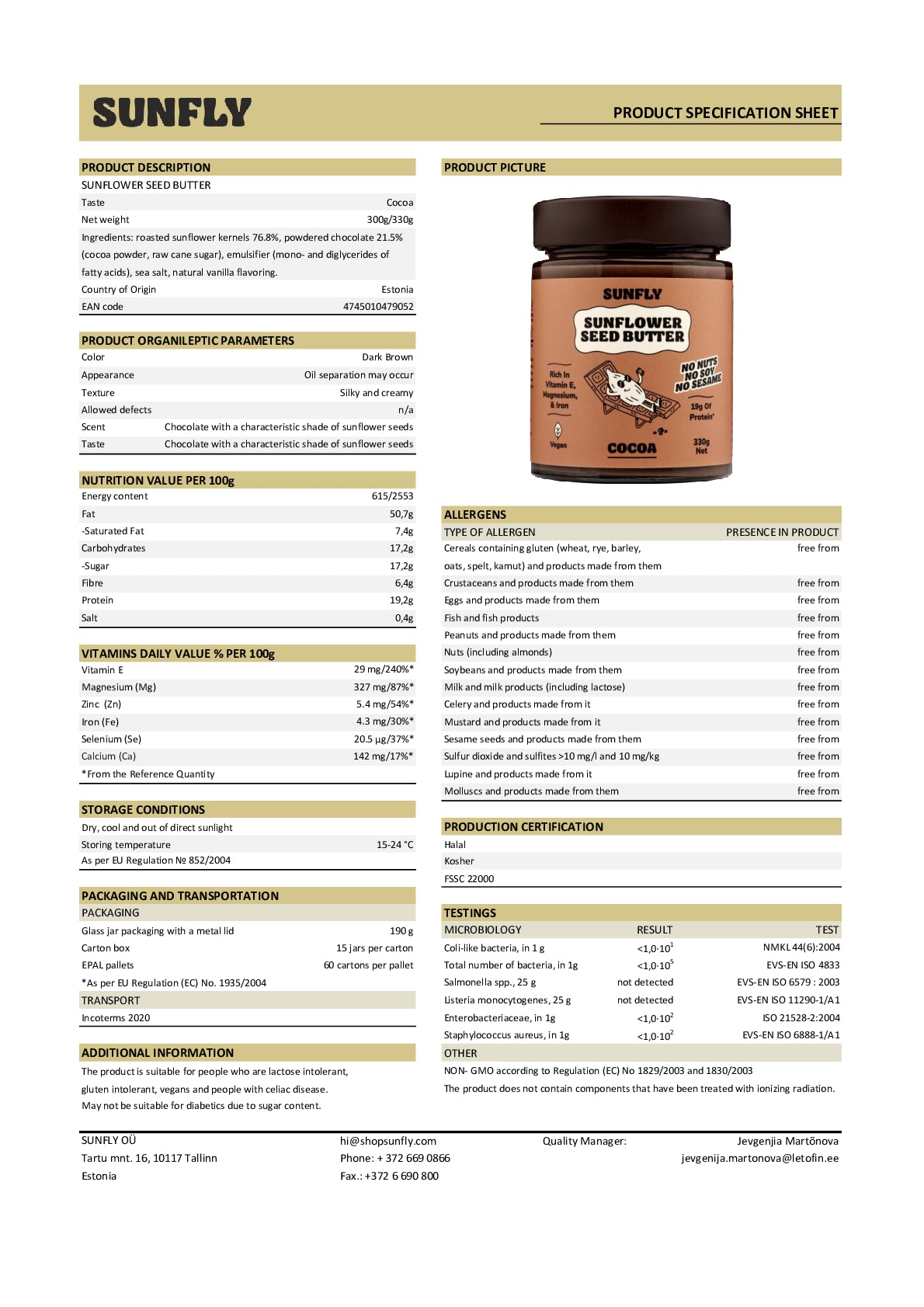 Sunfly Cocoa Sunflower Seed Butter 330g