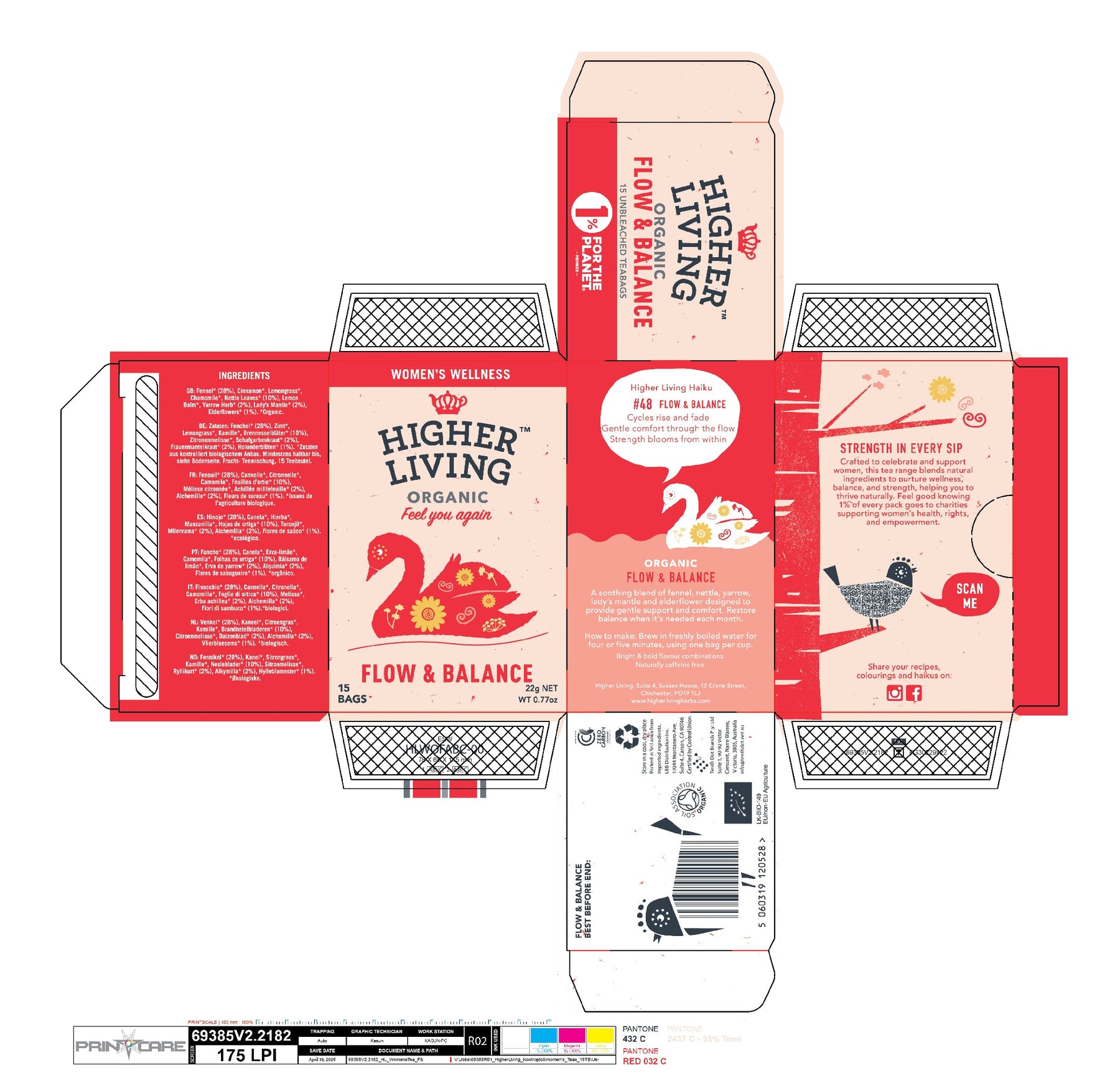 Womens Flow and Balance Tea - A balancing blend of fennel, cinnamon and lemongrass, calming chamomile and lemon balm, and traditional herbs like nettle, yarrow, lady's mantle and elderflower