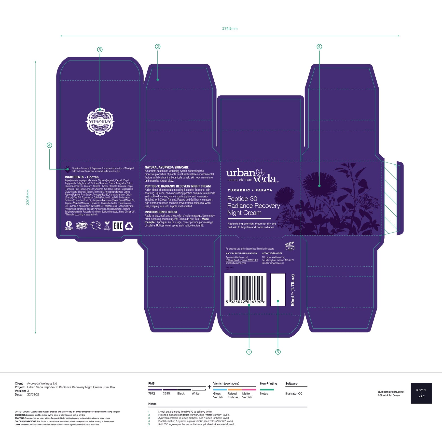 Naturally brightening botanicals Turmeric, Papaya and Goji berry are enriched with an anti-inflammatory peptide sequence to impart a glow and luminosity to skin, helping to balance tone and correct signs of hyperpigmentation. Deeply moisturising sweet Almond oil and collagen-boosting Arjuna, brimming with phytonutrients and antioxidants, work in synergy to repair and radiance restore overnight. Packed in a sustainably-sourced Forest Sustainability Certified carton.