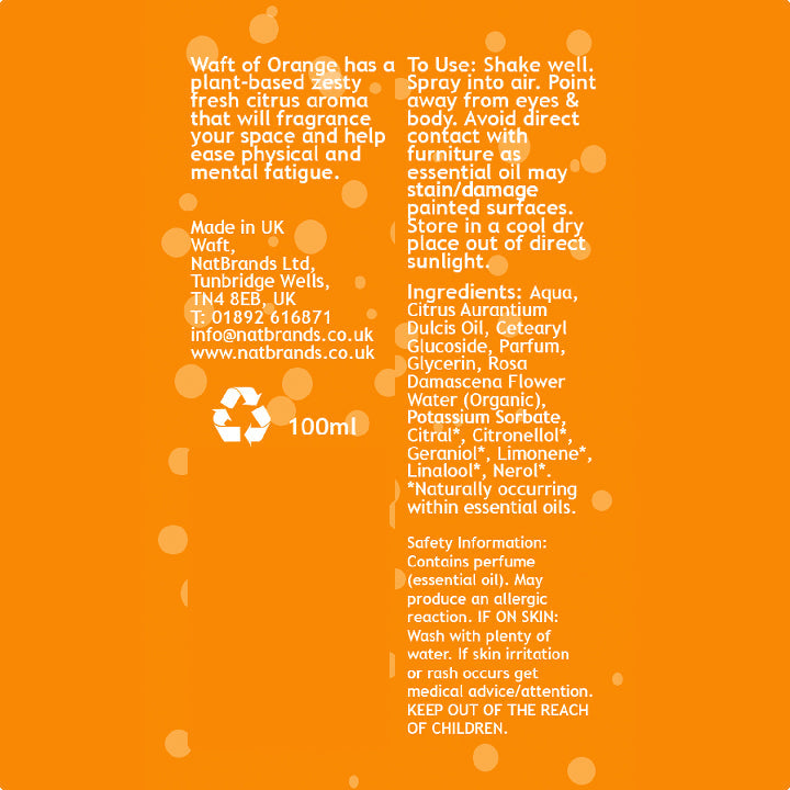 Bring a delightful waft of plant-based natural fragrance into your home. Waft Orange is one of our 98.5% organic signature aromatic air freshener blends.